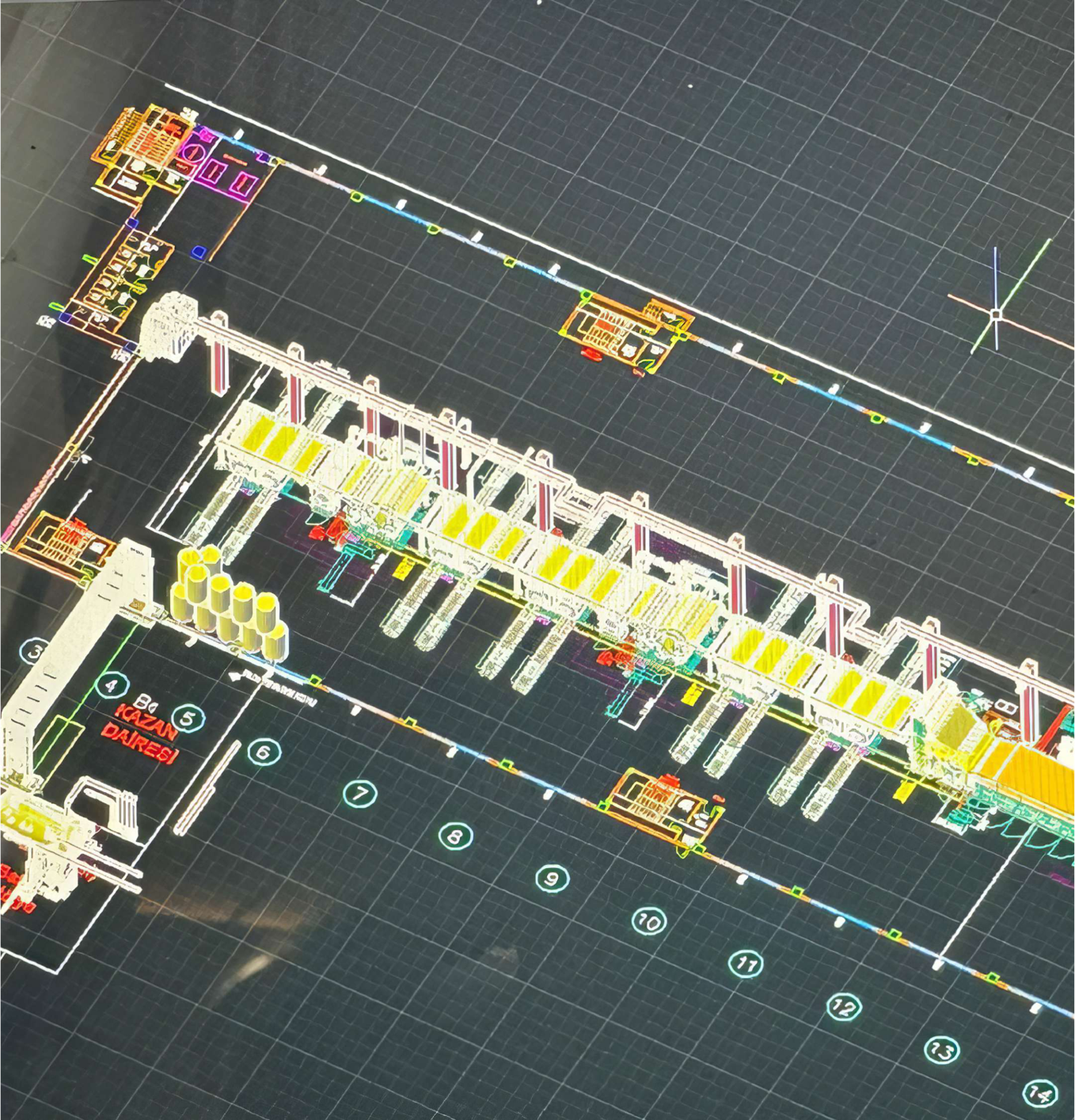 P&ID diyagramında netlik kazanan ekipmanların, yerleşim alanı tespiti için yapılan çalışmadır. Bu tasarım aşamasında ergonomi ön plandadır.